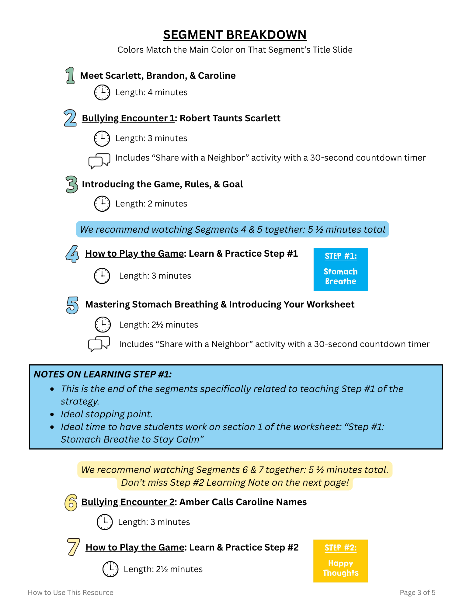 (4) Segment Breakdown giving you the following information for each of the 16 brief (1-4 min.) segments in the video: